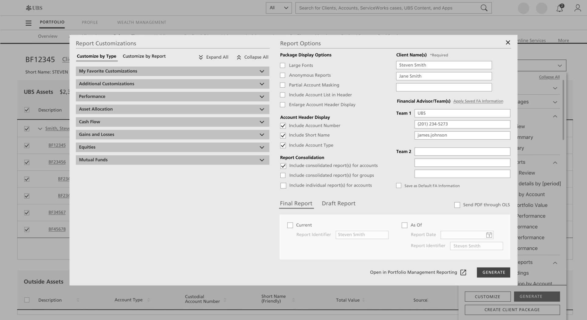 Moving forward, we need to create a solution that integrates seamlessly with UBS’s other portfolio management tools.